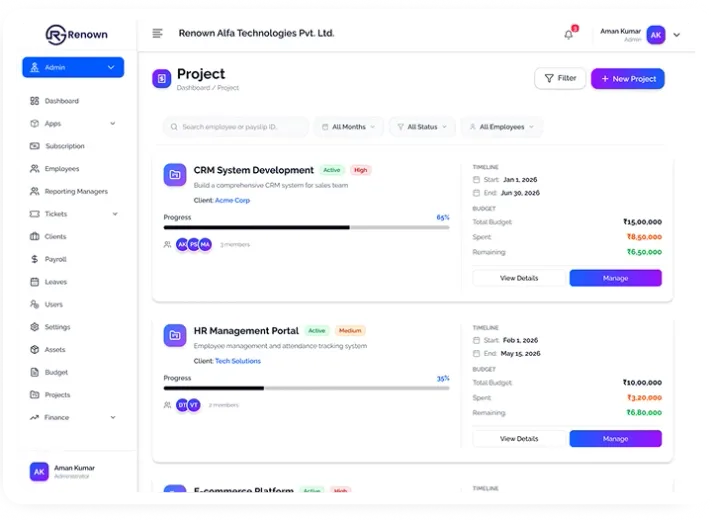 Renown’s project management software is not just designed for small businesses. It supports global team collaboration through adequate task allocation and tracking progress. You can better control your resources while your teams get more clarity about daily KRAs. The centralized system software, with easy access to tasks and data, eliminates confusion, keeps teams aligned, and ensures accountability. Additionally, the integrated task tracking software helps streamline workflows so your teams can prioritize tasks based on deadlines and deliver projects with confidence.