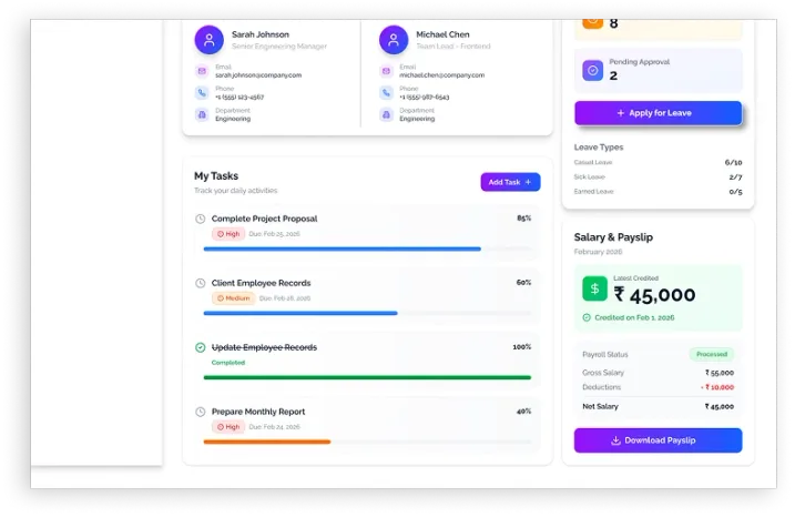 Our project management CRM comes with an intuitive dashboard to simplify project execution for small businesses. This simple project management system allows you to streamline tasks, track progress, and strengthen team collaboration for consistent, on-time delivery.