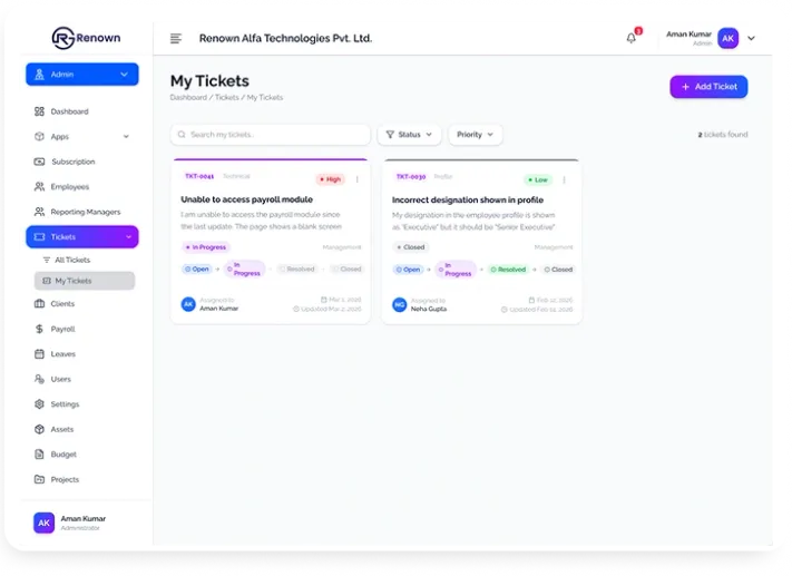 A Ticket Management System helps businesses manage customer queries, support requests, and internal issues in an organized way. It ensures that every request is tracked, assigned, and resolved efficiently without missing any important task. A Ticket Management System helps businesses manage customer queries, support requests, and internal issues in an organized way.